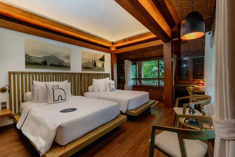Two of the suites have the benefit of an adjoining private garden with the forest beyond and are situated at ground level, celebrating the uniqueness of the land contour with the character of a traditional wooden Joglo home.