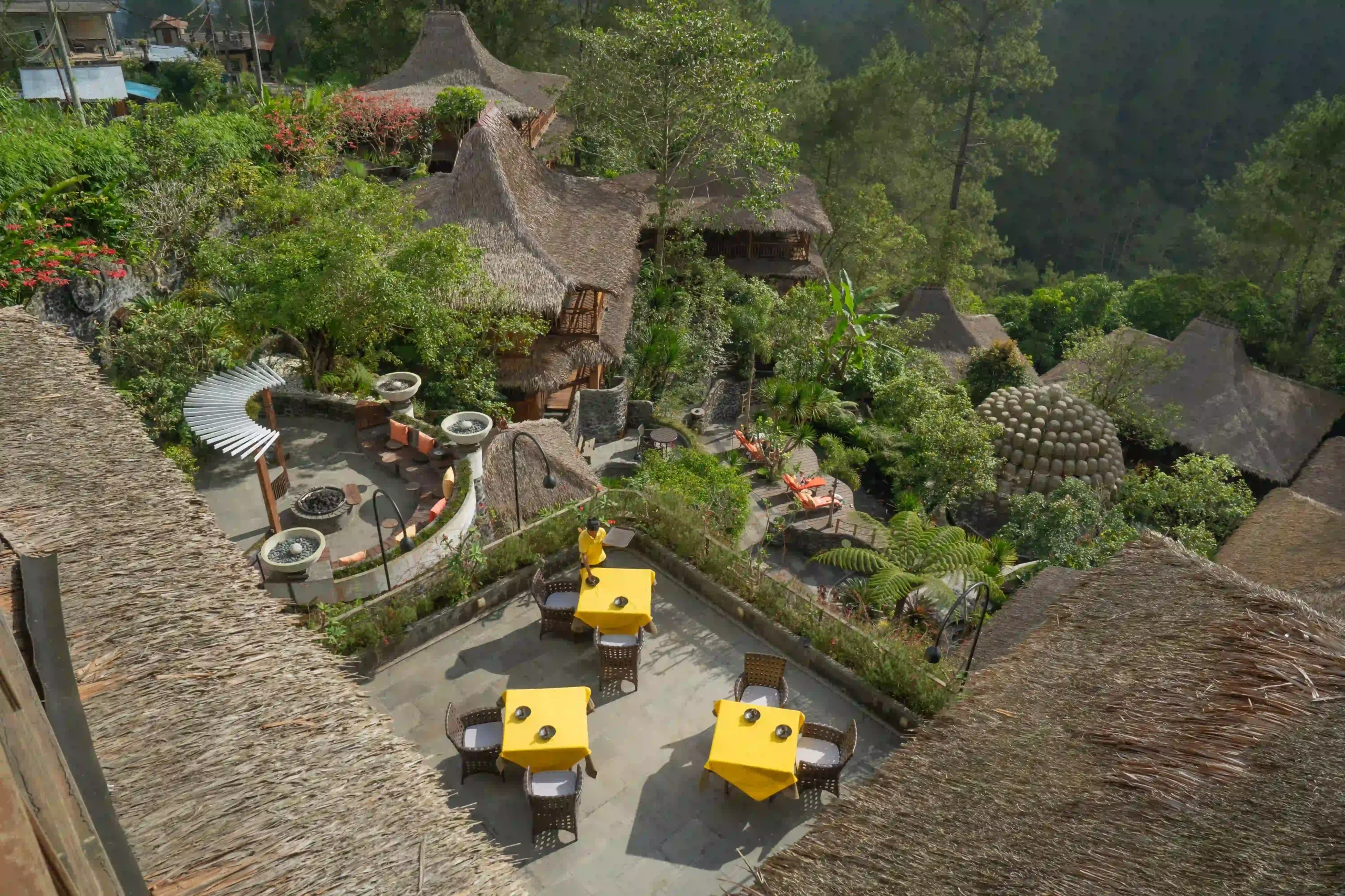Accommodation at Tira Vilagna Suite & Spa comprises seven Classic Joglo buildings, and offers sustainable luxury in a breathtaking location. Each wooden building was once a traditional family home that has since been repurposed and painstakingly rebuilt to suit the contours of terrain with views across a pine forested valley.